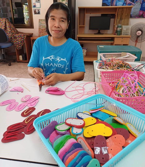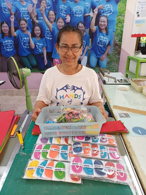Through their social enterprise, Hands of Hope, local artisans – including women, men living with HIV, and others who have experienced hardship – create beautifully crafted flip-flop pins, magnets and gifts.